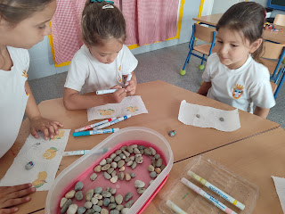 Pintar piedras es algo que les fascina, les relaja y fomenta su lado más creativo. Si vais a la playa aprovechad para recoger piedras suaves y traerlas al cole que necesitamos muchas para nuestro taller de piedras.